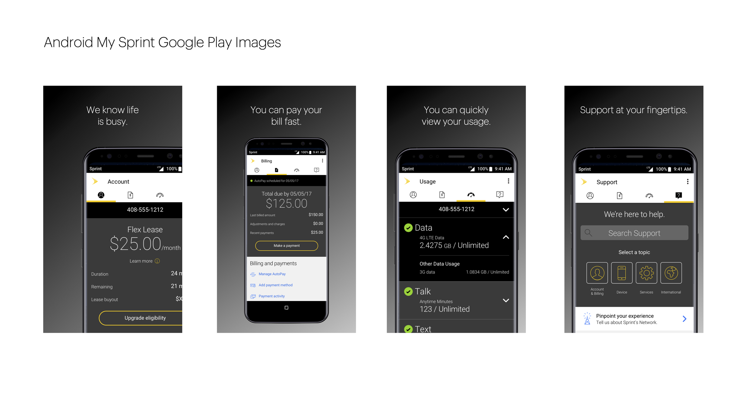 As the team created the new designs, I provided guidance and creative direction to ensure the laddered back into the overall strategy for the new My Sprint app.